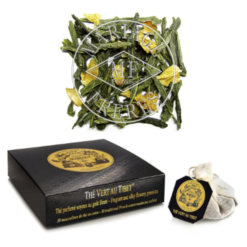 Thé vert aux tonalités florales (rose, jasmin) et d’agrumes (bergamote, mandarine), mises en valeur par une note végétale jusque là inconnue.