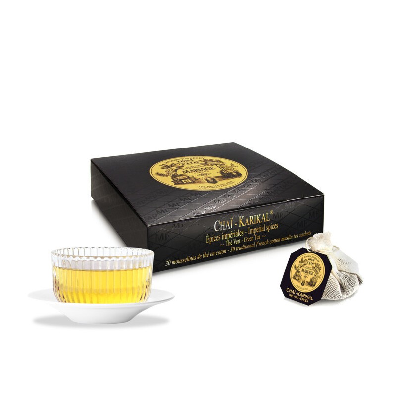 Cet ancien comptoir de la route des épices a inspiré à MARIAGE FRÈRES ce fabuleux CHAÏ-KARIKAL®, où les saveurs du traditionnel chaï (cardamome, poivre, gingembre, cannelle, clou de girofle) s’allient aux notes pimpantes et rafraîchissantes du thé vert.